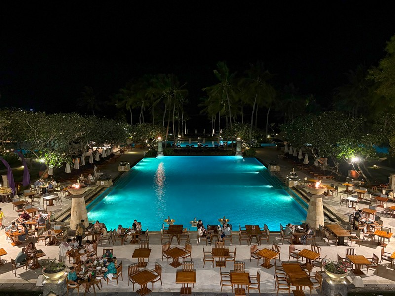 밥 다 먹고 차 한잔 하러 올라온 라운지에서 풀싸이드 레스토랑을 보면 요렇게 멋있다.