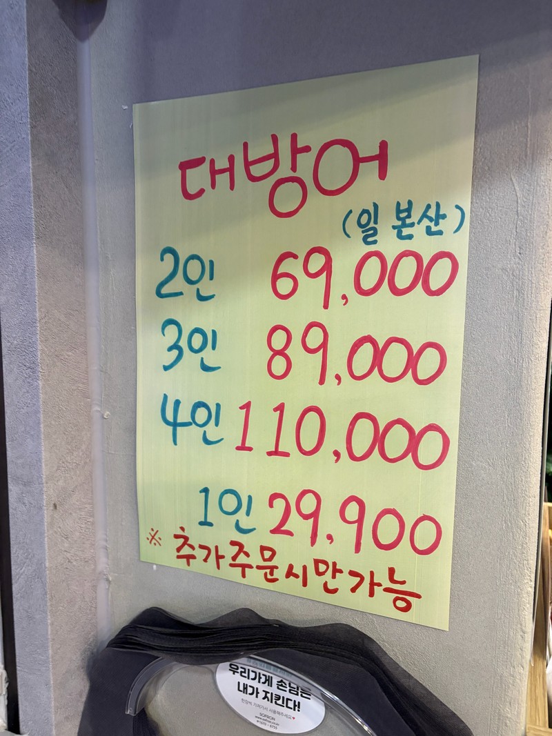 방어 3인분!! 8.9만원임. 맛은 와!!!!!!! 미쳤네!!!!!!! 바다회사랑이네???????