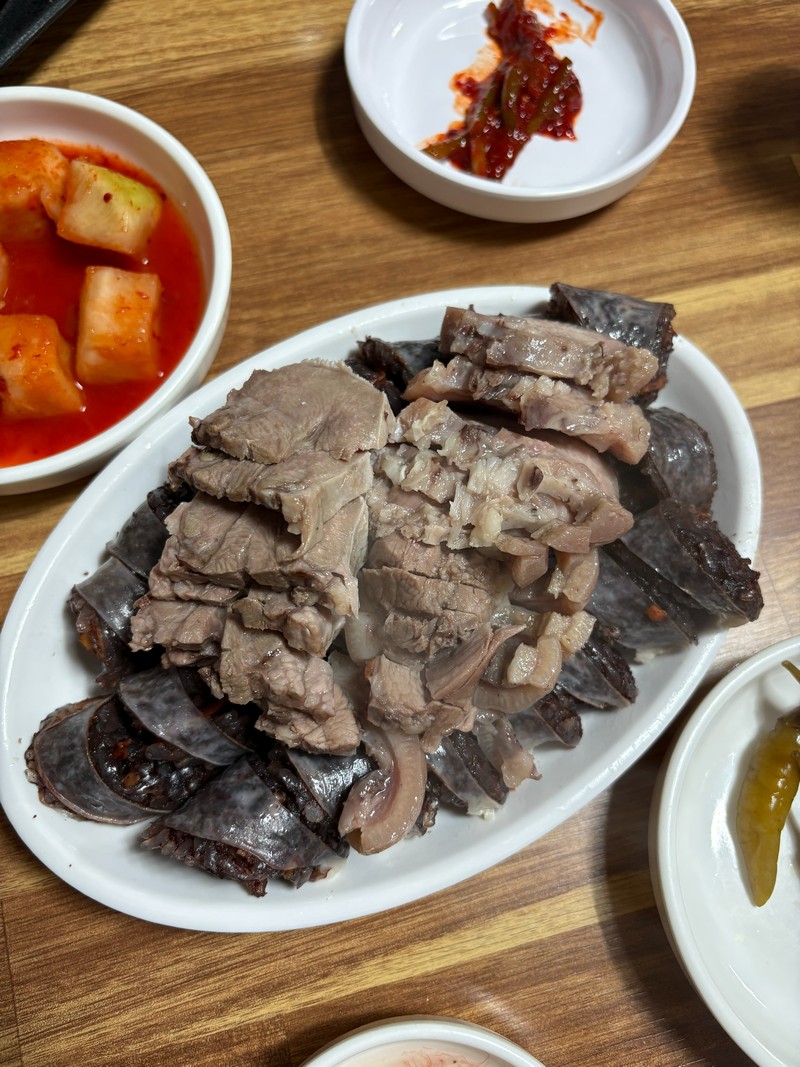 2만원짜리 모둠순대를 주문하면 찹쌀순대랑 머릿고기를 접시 한가득 바로 삶아서 내준다.