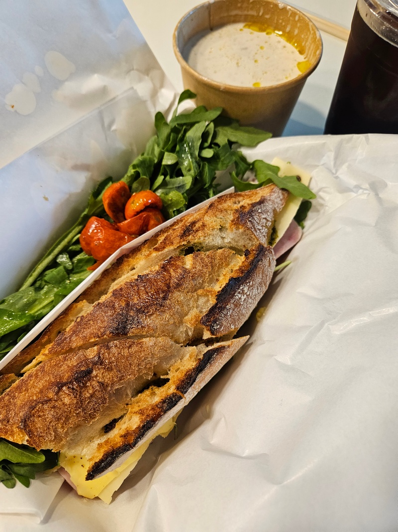 바게트샌드위치를 주문했는데, 루꼴라 샐러드를 빵 보다도 더 많이 준다ㄷㄷ