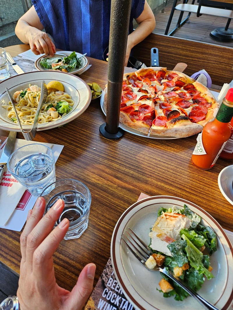 팬케이크가 메인메뉴인데, 시저샐러드, 소세지랑 베이컨이, 스크렘블에그랑 커피 다 맛있다.